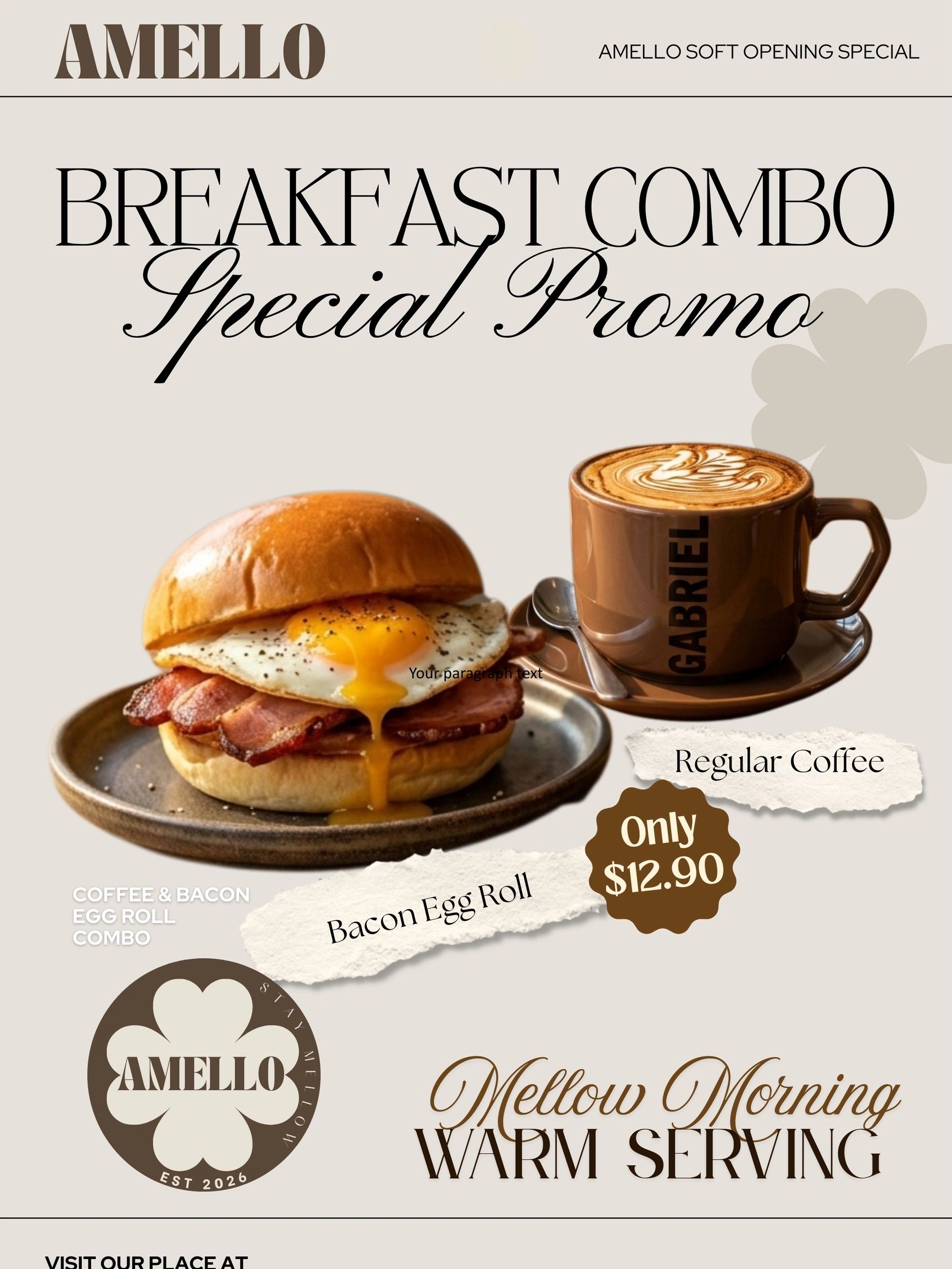 The name comes from "A Mellow Moment"—a state of calm, warmth, and gentle joy. AMELLO was created as a refined gathering place — where quality coffee, thoughtful food, and genuine hospitality come together in a warm, open setting at the heart of our Gordon community.